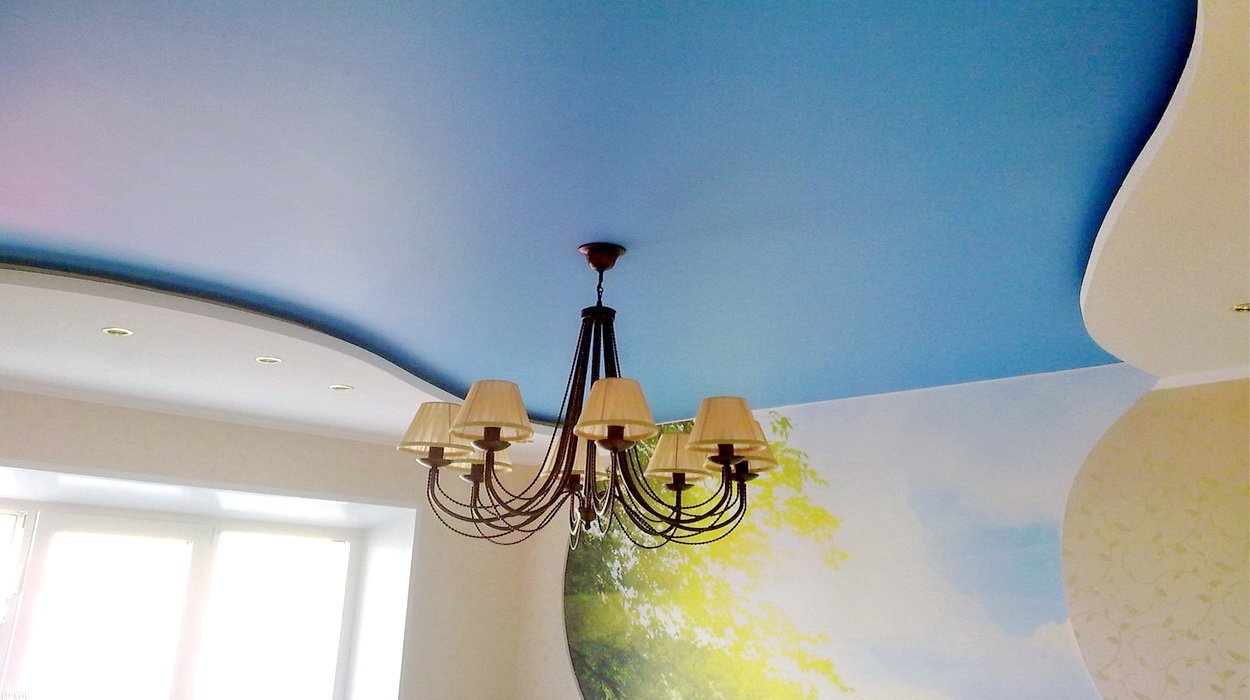 Например, покрытие из матовой плёнки идеально подходит для кухонь, ванн, санузлов и бассейнов, чего нельзя сказать о сатине. Зато сатиновые полотнища имеют более оригинальный и дорогой вид. Их перламутровый блеск и игру цвета при разном освещении не способно повторить не одно другое потолочное покрытие, поэтому в гостиной, в спальне или детской лучше потолка не придумаешь.